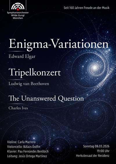 Mit diesem Konzert am Sonntag, 08.03.2026 um 19 Uhr im Herkulessaal der Residenz verabschiedet sich nach drei Jahren inspirierender Leitung der Wilden Gungl unser geschätzter Dirigent Jesús Ortega Martínez. Wir danken ihm für eine großartige gemeinsame Zeit und wünschen ihm für seinen weiteren Lebensweg viel Erfolg. Sie sind herzlich eingeladen, diesen besonderen Abend mit uns zu genießen.